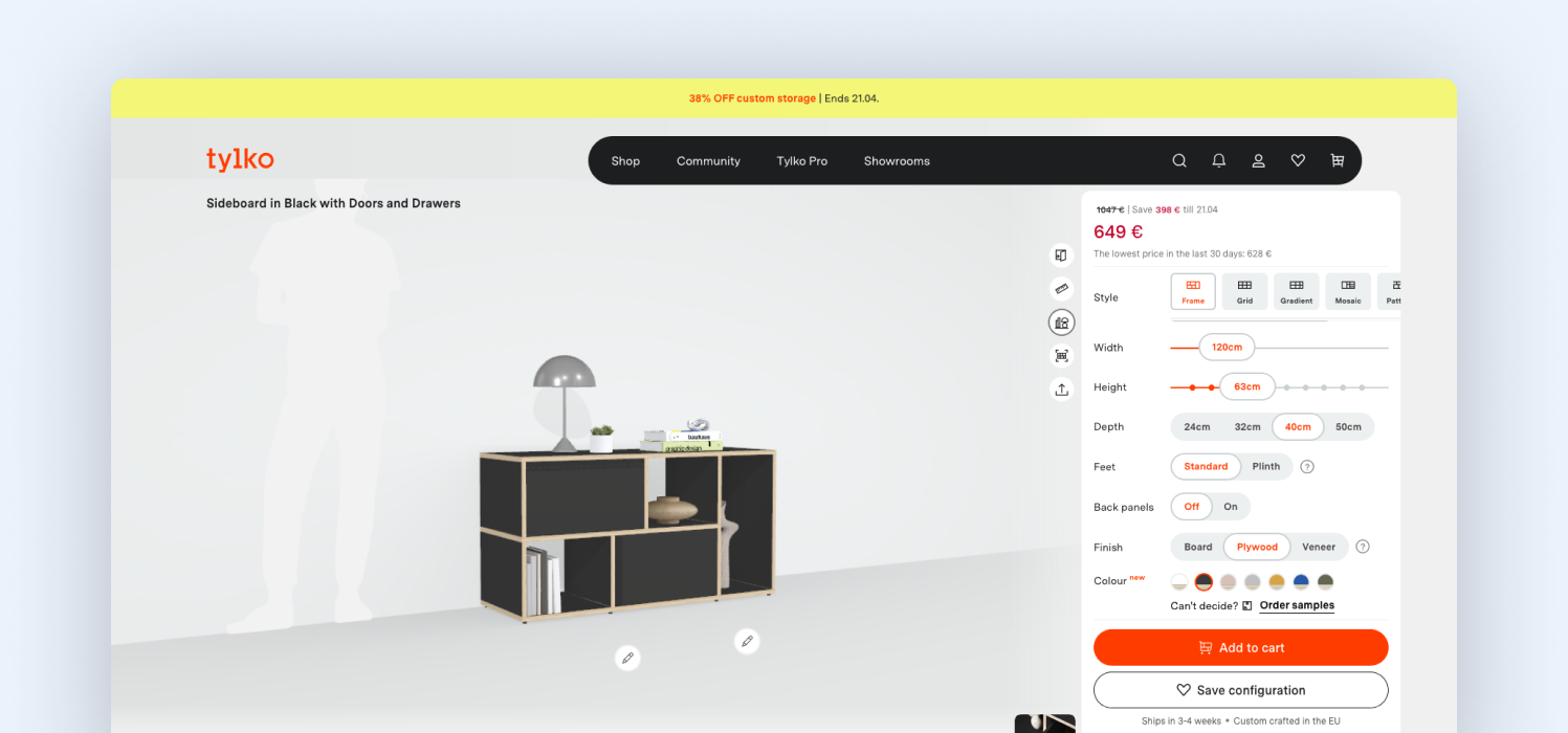 A good way to understand this is by looking at Tylko. When users change dimensions, layouts, or colors, the product updates instantly without breaking. That works because the product is built in parts, not as one fixed model.